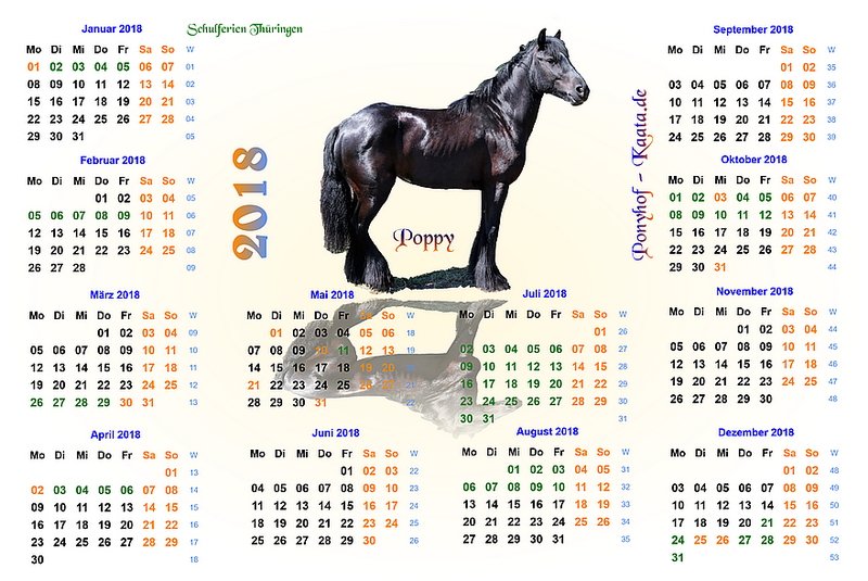 Der Ponyhof Kaata Jahreskalender Format A4 quer zum Downeload als PDF 2 MB